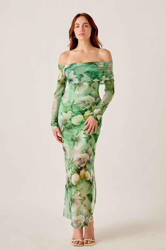 Green Multi Floral Mesh Maxi Dress - Abril 24