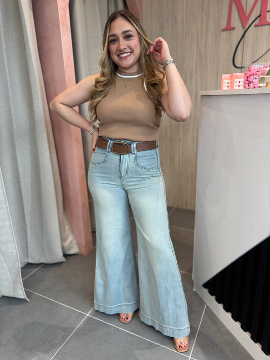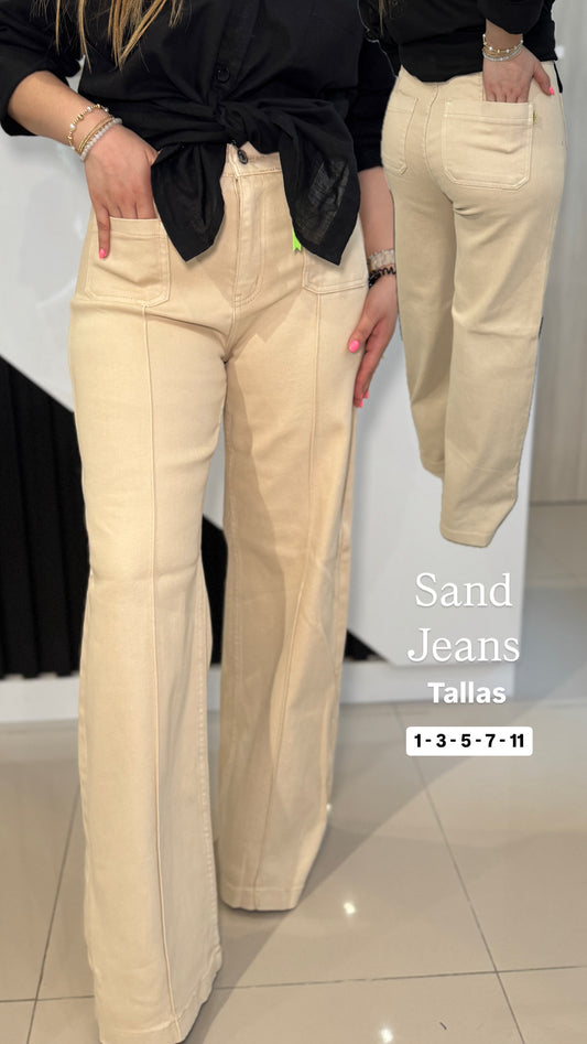 Pantalón Bota Ancha Arena + Sobre puesto beige