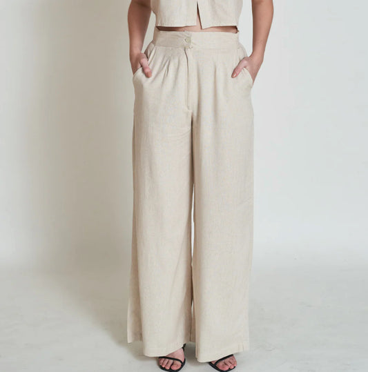 Pantalón Bota Ancha Arena + Sobre puesto beige