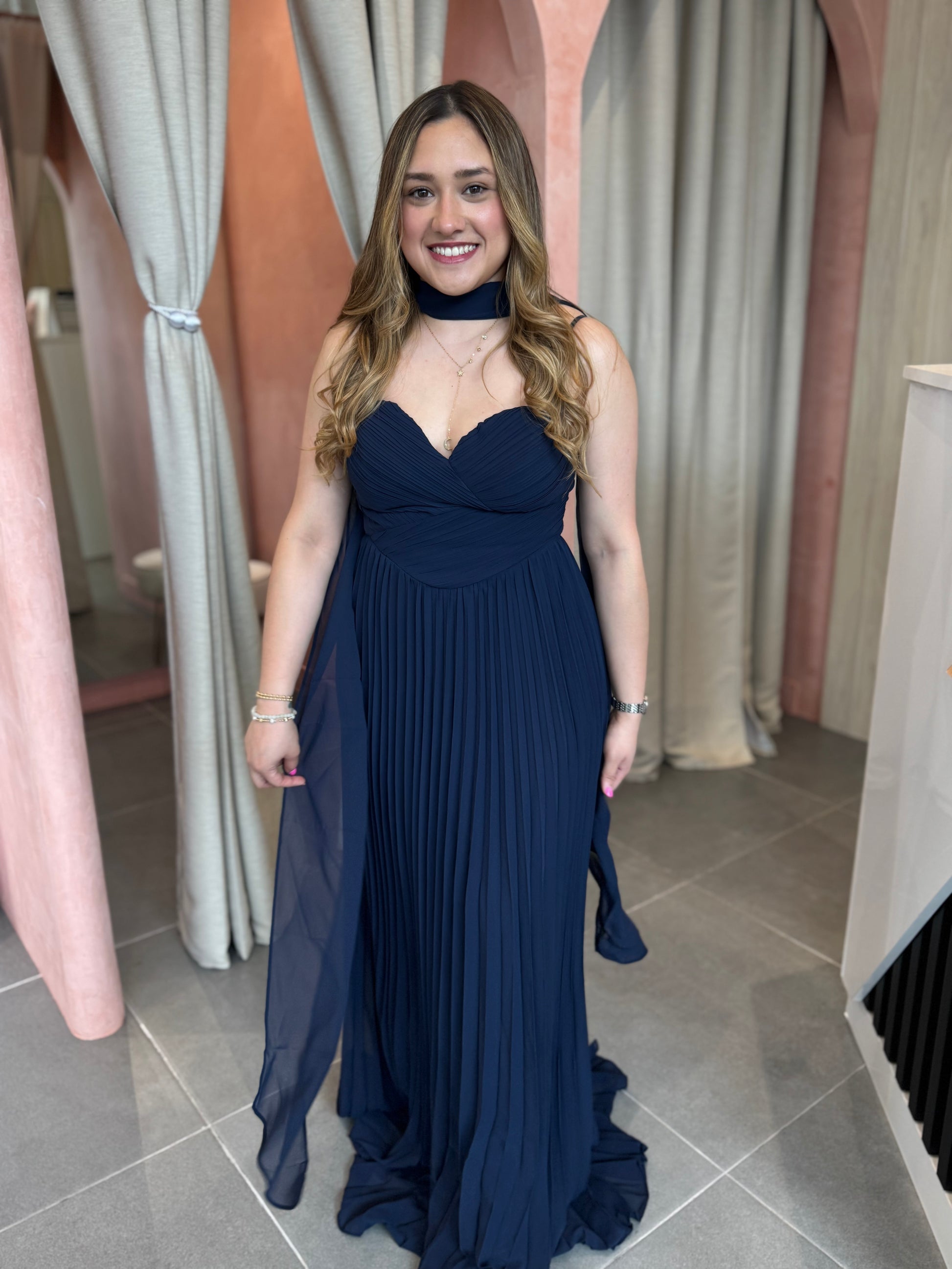 Navy Chiffon Maxi Dress with Scarf
