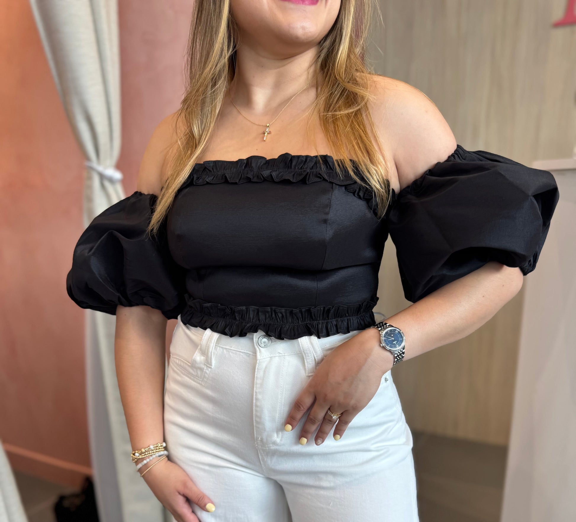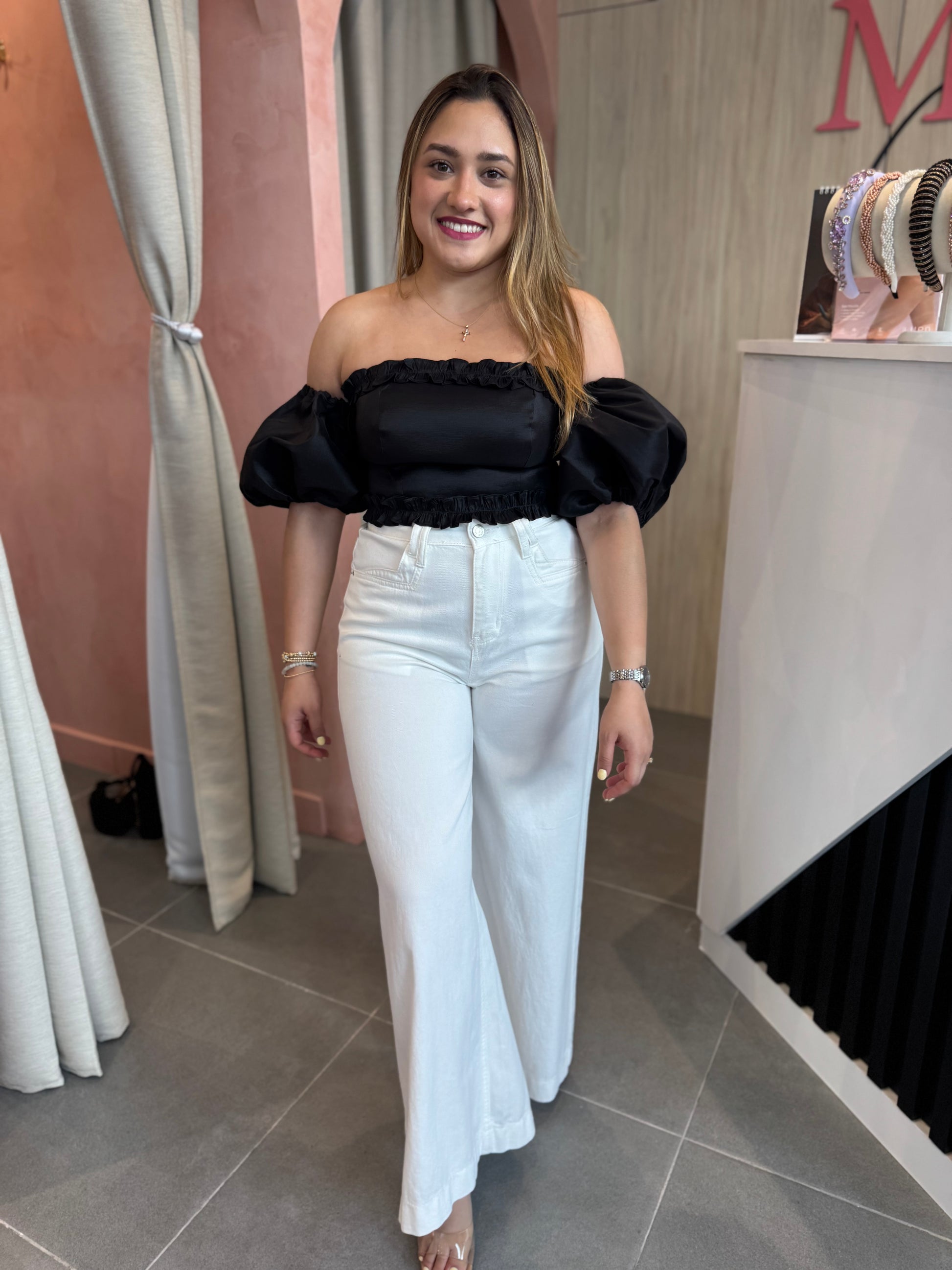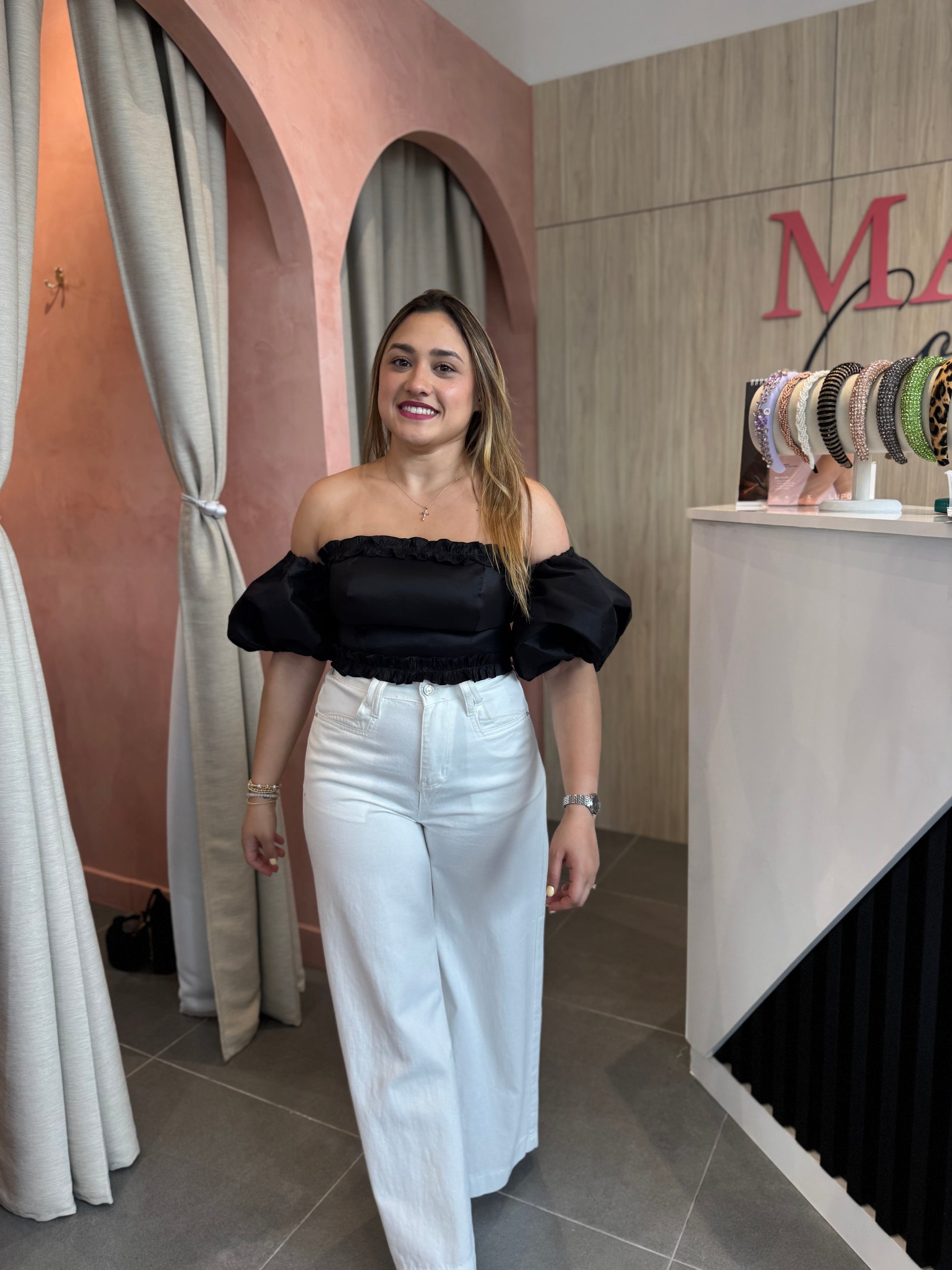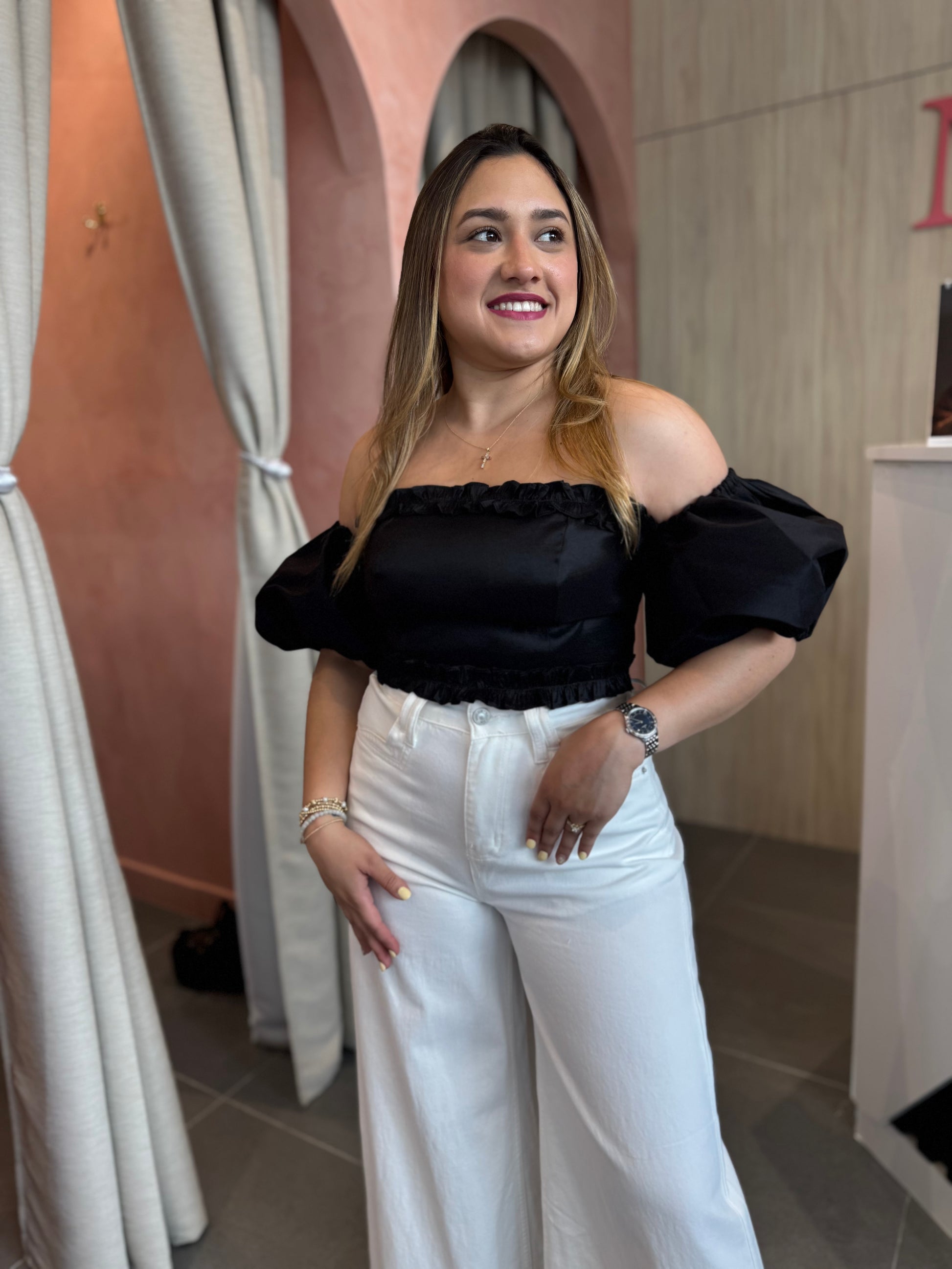 Top negro off shoulder