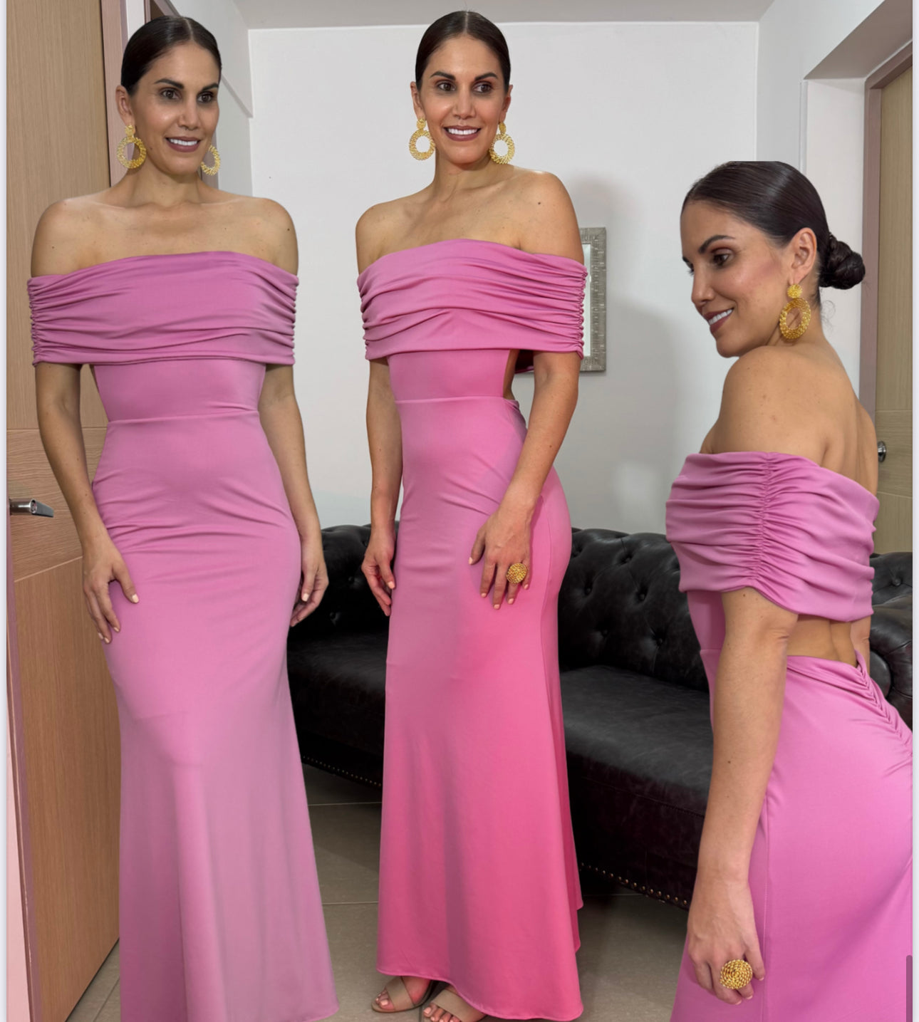El vestido Samantha Rosado es sinónimo de elegancia romántica. Su diseño off-shoulder con pliegues delicados, resalta los hombros y el cuello con un aire sofisticado. Confeccionado en tela licra con acabado satinado, abrázales, silueta con suavidad y realiza las curvas con un ajuste perfecto ideal para eventos formales o cenas especiales.